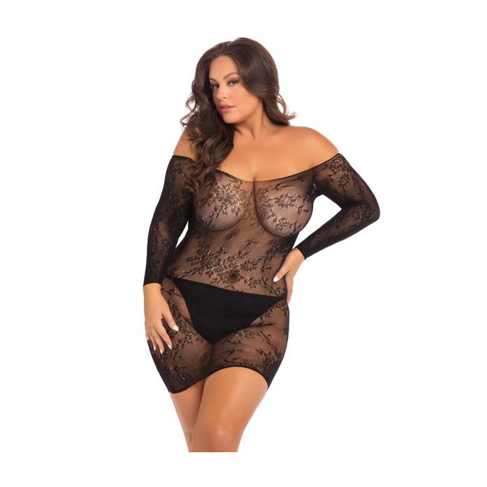 Het Open Season Off Shoulder Jurkje - Zwart is een bodystocking jurkje van het merk René Rofé. Dit jurkje heeft een nauwsluitende pasvorm en is gemaakt van fijnmazig netstof. Het transparante netstof materiaal voelt heerlijk zacht en heeft een hoge stretch kwaliteit. Het korte jurkje zit heerlijk strak rond jouw vrouwelijke vormen. Het off shoulder model met lange mouwen maakt het jurkje extra verleidelijk. In het netstof zijn romantische bloem details verweven.