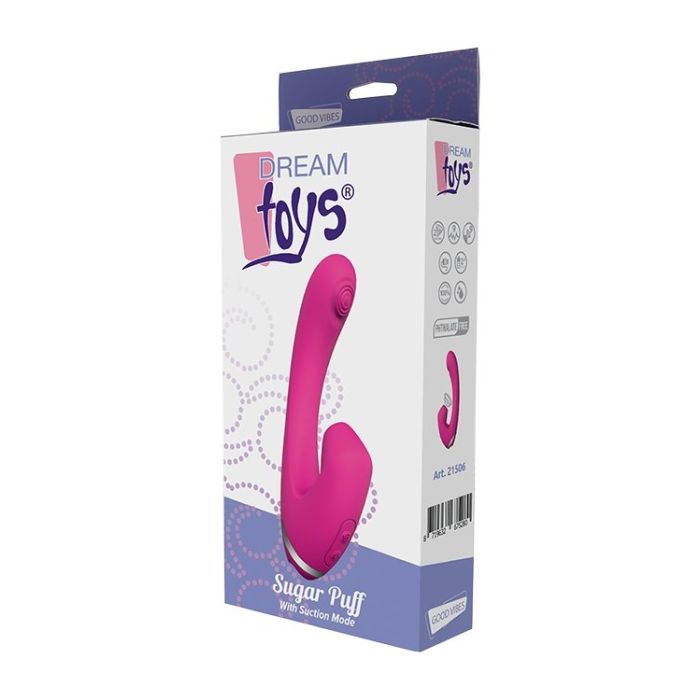 Voor een dubbele sensatie is de oplaadbare vibrator sugar puffs een ideale toy voor jou. Deze speciale vibtrator zal je g-spot lekker verwennen terwijl er ook heerlijk aan je clitoris wordt gesabbeld. De schacht voorziet jou van 9 verschillende vibratie standen terwijl het zuig gedeelte 9 zuig functies heeft. Al deze standjes zijn te bedienen met het eenvoudig bedienbare pushbutton systeem aan de onderkant. De vibrator is oplaadbaar en zal in maar 2.5 uur tijd volledig opgeladen zijn. Maak je nieuwste toy schoon a elk gebruik. Dit doe je handig onder de kraan met een milde zeep en een toycleaner.