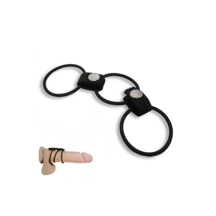 De set wordt bij elkaar gehouden door twee lederen bandjes met drukknopen, die je eenvoudig kunt loskoppelen. De rubberen ringen zorgen voor een stevige grip en een verbeterde bloedcirculatie. Dit kan leiden tot intensere orgasmes en een langduriger genot.