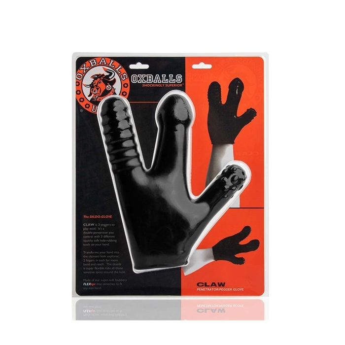 Samen met je partner genieten van anale seks? Dan is de Oxballs Claw Handschoen een onmisbaar speeltje in jullie collectie. Deze handschoen heeft maar 3 vingers, maar deze zullen je gegarandeerd laten kronkelen van genot. De 3 vingers beschikken namelijk allemaal over een andere vorm en stimulerende ribbels of noppen. De Oxballs Claw handschoen is gemaakt rekbaar TPR materiaal dat gebruikt kan worden in combinatie met glijmiddel op waterbasis en zelfs onder de douche. De vingers hebben een variërende lengte van 7,6 tot 12 cm. Afhankelijk van de bui waarin je bent, kies je welk vinger je inbrengt. Maar je kunt ze natuurlijk ook alle 3 met elkaar afwisselen. Speel samen of alleen de meest ondeugende spelletjes met de Oxballs Claw handschoen.