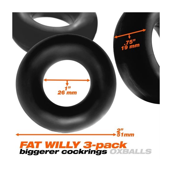 Oxballs Fat Willy 3-pack Cockringen - Zwart