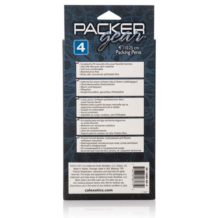 Ben je op zoek naar een realistische penis om je Packer Gear slip mee te vullen? Dan is deze huidkleur Packing Penis van CalExotics perfect voor jou! Geniet van het levensechte gevoel van deze penis in je Packer Gear slip en laat al je fantasieën werkelijkheid worden. Deze Female to Male Gear realistische penis is gemaakt van zacht TPR materiaal en 10,25 cm lang. De penis heeft alle kenmerken van een echte penis: van een realistische eikel tot levensechte balzak. Deze Packing Penis is zeer flexibel en buigzaam en voelt aan als het echte werk. Dit speeltje is volledig bodysafe, waterproof en past in elke slip van Packer Gear. Geniet waar en wanneer je maar wilt van deze realistische Packing Penis en voel je mannelijker en stoerder als ooit tevoren.