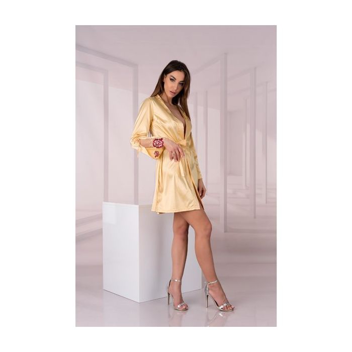 De prachtige Parllie Kamerjas komt uit de Sunglow lijn van Livco Corsetti. Deze kamerjas is gemaakt van gladde, satijn geweven stof voor een glanzend effect. De gele kleur en de glanzende stof zorgen voor een stralend Sunglow effect.