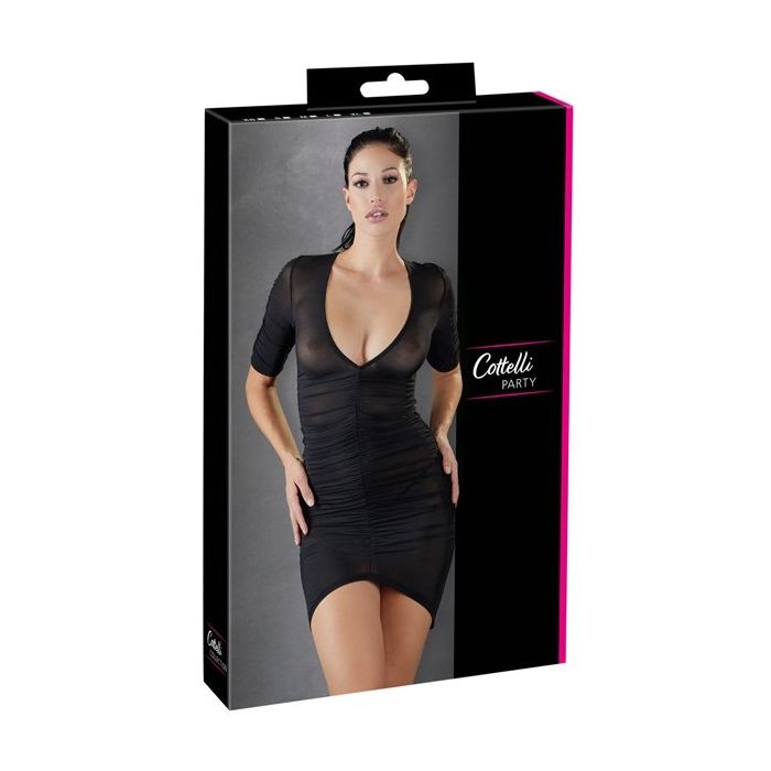 Het uitdagende Party Plooi Jurkje is een super verleidelijk jurkje uit de Party collectie van Cottelli Collection. Dit strakke jurkje is gemaakt van heerlijk rekbare stof dat doorzichtig is. Dit jurkje laat dus niets aan de verbeelding over. Het jurkje heeft halflange mouwen, een diepe V-hals en een kort model. Het jurkje is speels geplooid en zorgt voor een verleidelijke uitstaling.