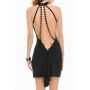 Het halter model van het Odile Jurkje zorgt ervoor dat de schouders verleidelijk bloot zijn. Aan de voorkant ter hoogte van de boezem is een driehoekige uitsparing gemaakt opgevuld met doorschijnend tule, waardoor je decolleté prachtig te zien is. De achterzijde van dit jurkje maakt dit simpele jurkje tot een waar pareltje die je niet zomaar in de kast zal laten hangen. Goudkleurige knopen, sierlijke borduursels en speelse sierbandjes sieren de diep uitgesneden rug van dit jurkje in retro stijl. Onderaan de achterkant is het jurkje afgewerkt met een korte, geplooide sleep welke sierlijk meebeweegt wanneer je loopt.
