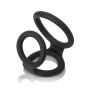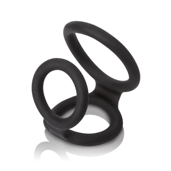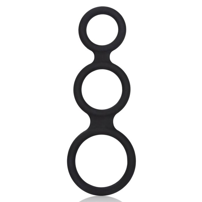 Knel je zaakje heerlijk af met deze rekbare penis en bal ring van calexotics. Door deze geweldige ring kan jij heel de nacht presteren en dat zal je partner erg waarderen. De bovenste ring gaat om het hele zaakje, de middelste ring gaat om enkel je penis en de onderste breng jij om je ballen heen. Door deze heerlijke techniek krijg jij een geweldige erectie die gegarandeerd heel de nacht aan blijft houden en waardoor jij overweldigende orgasmes zal beleven. Het materiaal is super dik en heel duurzaam, jij zal dus vaker dan 1 nacht plezier hebben van deze penis en bal ring.