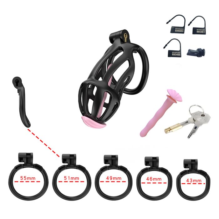 De CELLMATE Centurion peniskuisheidskooi is een innovatief en hoogwaardig kuisheidsapparaat dat is ontworpen voor diegenen die op zoek zijn naar ultieme controle en discretie. Dit apparaat is vervaardigd uit hoogwaardig plastic en met de hand afgewerkt, wat zorgt voor een luxe uitstraling en een comfortabele ervaring. De kooi wordt geleverd met vier ergonomisch gevormde cockringen in verschillende diameters (43mm, 46mm, 49mm en 55mm), zodat gebruikers de perfecte pasvorm kunnen kiezen en een ontsnappingsvrije ervaring kunnen garanderen. Het zwarte ontwerp, gecombineerd met de opvallende roze siliconenkatheter, voegt een speelse maar toch verfijnde touch toe aan het geheel.