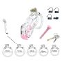 Een opvallend kenmerk van de Guardian peniskooi is de roze, pussyficerende siliconenkatheter, die niet alleen esthetisch aantrekkelijk is, maar ook functioneel. Deze flexibele, klinkende plug heeft een unieke opening die het mogelijk maakt om te urineren zonder de kooi te hoeven verwijderen, wat bijdraagt aan het gebruiksgemak en de discretie. Bovendien wordt de Guardian Chastity Cage geleverd met zowel een traditioneel metalen slot met twee sleutels als een speciale ABS-kunststof adapterpen. Deze adapterpen maakt het mogelijk om de kooi in Stealth-modus te vergrendelen met een van de vijf kunststof sloten, elk voorzien van een unieke sabotagebestendige identificatiecode, wat het ideaal maakt voor gebruik tijdens reizen of in situaties met metaaldetectors. Reservesets van tien wegwerpsloten zijn ook apart verkrijgbaar, waardoor gebruikers altijd voorbereid zijn.