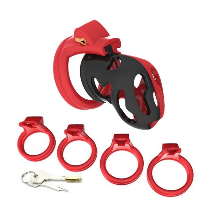 De kooi wordt geleverd met 4 ringen van verschillende diameters (39, 42, 47 en 51 mm) die aan de testikels kunnen worden bevestigd, evenals een stuk voor de penis van 6,5 x 3 cm dat inbrengbaar is.