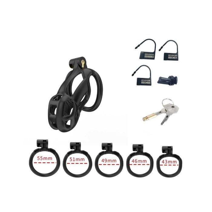 Deze peniskooi set wordt geleverd met 5 ringen in verschillende maten, variërend tussen 43 - 55 mm, zodat de gebruiker de juiste maat kan kiezen voor een perfecte pasvorm.