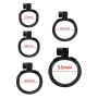 bevat vijf ringen in verschillende maten, variërend van 43 tot 55 mm,