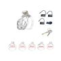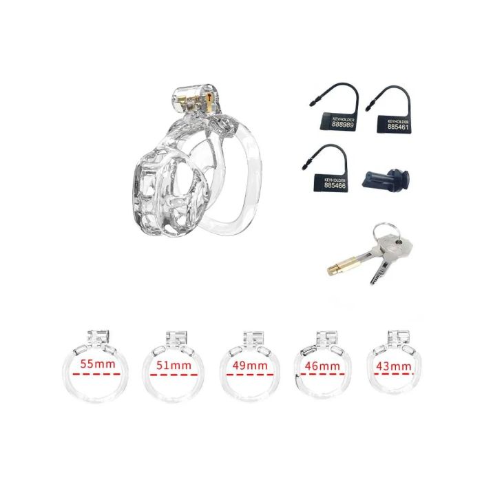 De set bevat vijf ringen in verschillende maten, variërend van 43 tot 55 mm, zodat gebruikers de perfecte pasvorm kunnen vinden die aansluit bij hun persoonlijke voorkeuren en anatomie. Daarnaast is de set uitgerust met een koperen inbouwslot voor extra veiligheid en drie genummerde plastic hangsloten, die na gebruik eenvoudig kunnen worden afgeknipt met een schaar. Dit biedt niet alleen een praktische oplossing, maar ook een zekere mate van discretie. Voor reizigers zijn er twee plastic schroeven inbegrepen als alternatief voor de koperen sloten, wat ervoor zorgt dat de set luchthavenvriendelijk is en voldoet aan de veiligheidsnormen, zodat gebruikers zich geen zorgen hoeven te maken tijdens hun reizen.