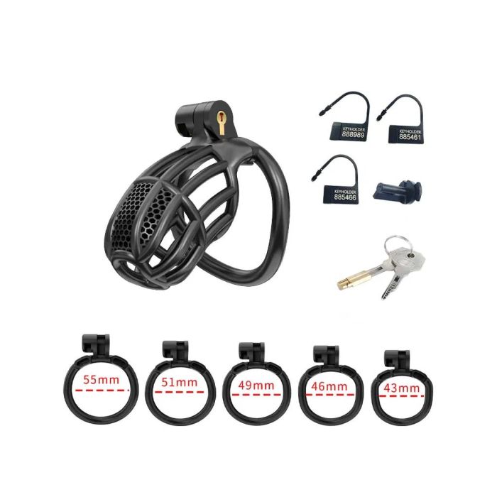 De Rimba P-Cage collectie biedt een innovatieve en veelzijdige oplossing voor degenen die geïnteresseerd zijn in kuisheid en controle. Deze peniskooien zijn vervaardigd uit hoogwaardig ABS-materiaal, wat niet alleen zorgt voor een comfortabele pasvorm, maar ook voor een lange levensduur, waardoor ze ideaal zijn voor langdurig gebruik. Elke kooi is ontworpen om de drager te weerhouden van een erectie, terwijl de slimme opening aan de voorkant het mogelijk maakt om te urineren zonder de kooi te hoeven verwijderen, wat het gebruiksgemak aanzienlijk vergroot. De set bevat vijf ringen in verschillende maten, variërend van 43 tot 55 mm, zodat gebruikers de perfecte pasvorm kunnen vinden. Bovendien wordt de set geleverd met een koperen inbouwslot en drie genummerde plastic hangsloten, die na gebruik eenvoudig kunnen worden afgeknipt met een schaar. Voor extra flexibiliteit zijn er ook twee plastic schroeven inbegrepen, die een alternatief bieden voor de koperen sloten, vooral handig voor reizigers die zich zorgen maken over veiligheidscontroles op luchthavens, aangezien de plastic sloten luchthavenvriendelijk zijn.