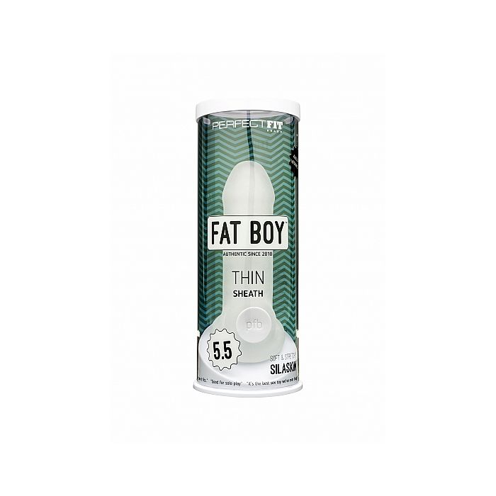 Met de Penissleeve Fat Boy Thin - 5.5 Transparant geef jij je penis direct en paar centimeters extra. Jij verrast hiermee gegarandeerd je partner. De penissleeve is gemaakt van ultra zacht silaskin materiaal. Dit materiaal is zo zacht als een huidje en voelt aan als echt. Van binnen is de sleeve genopt. Hierdoor voelt de drager meer stimulatie. De buitenkant is glad. en de sleeve zelf is dun voor maximaal genot. Je brengt de sleeve om je penis en rond je balzak. Zelfs bij een keiharde sessie zal de sleeve stevig blijven zitten.