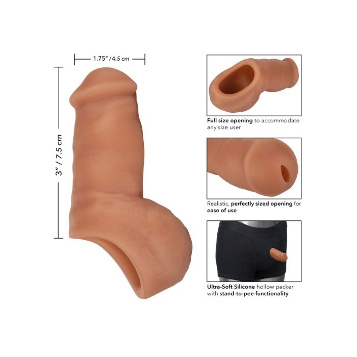 De Penissleeve Stand-To-Pee van CalExotics is gemaakt van zacht siliconen materiaal. De sleeve voelt realistisch aan en is perfect om de hele dag te dragen en te gebruiken. De hypoallergene premium siliconen zijn lichaamsveilig, ongeparfumeerd en ftalaatvrij. Wij adviseren hem voor en na gebruik te wassen met warm water en zeep en daarna inspuiten met toycleaner.