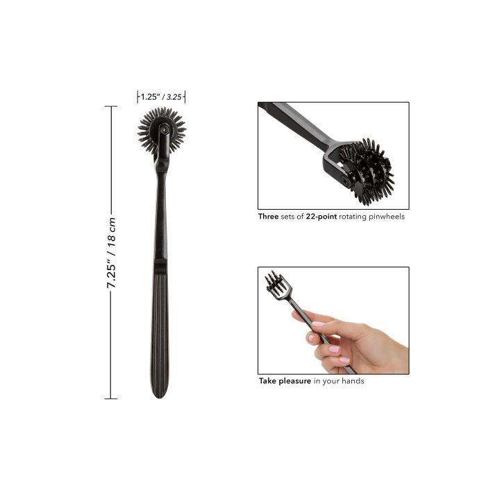 Hou jij ervan om je partner lichtelijk te pijnigen? Of is het andersom en houdt je partner ervan om gepijnigd te worden. Welke van de twee het ook mag zijn, dit Pinwheel met 3 Wieltjes van het merk Scandal gaat jullie helpen om een kinky bdsm avondje te creëren. De 3 wieltjes hebben elk 22 punten die plagend in de huid zullen prikken. Hoe harder jij kracht zal zetten, hoe pijnlijker het zal zijn voor je partner. Het handvat is geribbeld voor een stevige houvast. Laat zijn wie de baas is en ga voor een kinky bdsm avondje met deze geweldige pinwheel met 3 Wieltjes van Scandal.