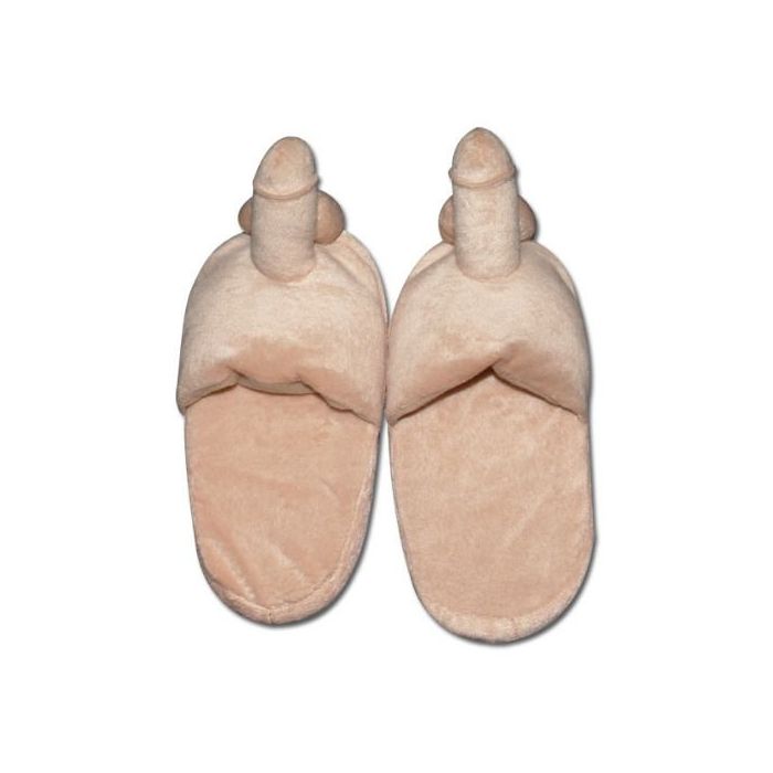Fijn zittende sloffen uit zacht pluche-materiaal met penis en ballen.