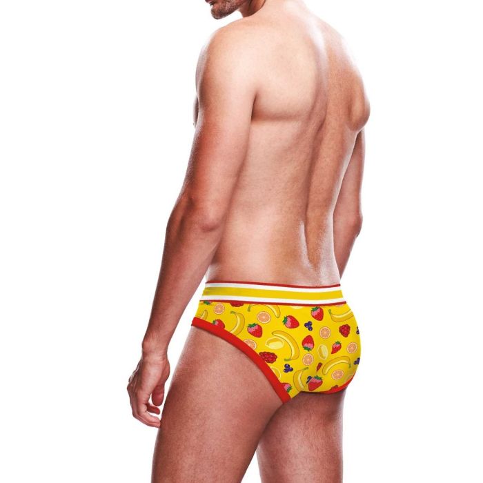Voel je stout met het dragen van deze Prowler Fruits Brief! De brief is gemaakt van zijdezachte materialen waardoor het zeer aangenaam draagt. Daarnaast beschikt de brief ook over een brede en rekbare tailleband waardoor je voldoende ondersteuning krijgt. De brief heeft een strakke en nauwsluitende pasvorm waardoor je mannelijke vormen goed zichtbaar zijn. De brief heeft een fruitige all-over print met allerlei fruitige lekkernijen zoals aardbeien, bananen en sinaasappelen. Dus verras je partner met het dragen van deze fruitpunch!