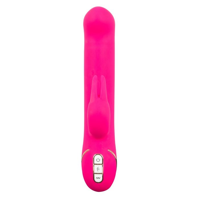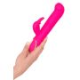 Verwen jezelf met een speeltje die precies weet hoe hij dat moet doen. Met de Rabbit Gesture van het merk Vibe Couture gun jij je G-spot en clitoris de beste kwaliteit. Dit roze konijntje weet van aanpakken en kan niet wachten om jou heerlijke orgasmes te gaan bezorgen. De Rabbit Gesture is gemaakt van zacht en bodysafe siliconen. Dit voelt niet alleen heerlijk aan op de huid, maar is ook veilig in gebruik. De vibrator heeft twee koppen waarmee hij zowel je G-spot als clitoris tegelijkertijd mee kan verwennen. Hij heeft een gebogen top en een bunny stimulator met lange oortjes aan de zijkant. De twee koppen hebben allebei een eigen krachtige motor, waardoor je deze apart kan bedienen. De grote kop vibreert niet, maar beweegt heen en weer. Met de bekende kom-hier-beweging masseert hij jouw G-spot op de meest ultieme manier mogelijk. De kop heeft 3 verschillende snelheden. Bouw het langzaam op of geniet meteen van de voor jou meest stimulerende snelheid. Terwijl je op dit punt waarschijnlijk al ligt te kronkelen van genot, is de Rabbit Gesture nog lang niet klaar. De twee kleine oortjes vibreren namelijk wel en zullen de clitoris stimuleren met intense trillingen. Ontdek de verschillende vibratiestanden van de clitoris stimulator en je zult heerlijk genieten van het dubbele plezier dat deze rabbit vibrator je brengt.