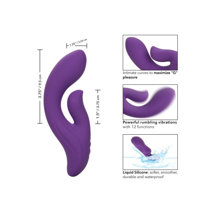 Deze Rabbit Vibrator Stella Dual Pleaser van CalExotics is gemaakt van hygiënisch superieure vloeibare siliconen voor een zachter, gladder, duurzamer en flexibeler gevoel. De vibrator heeft een gebogen vorm voor heerlijke g-spot stimulatie. Stella heeft 2 motoren met 12 lekkere vibratiestanden die je eenvoudig kunt bedienen op het speeltje zelf. Laad je favoriete vibrator op in slechts 2 uur met de meegeleverde USB oplaadkabel. Door de veiligheidsreisvergrendeling is Stella geweldig om mee te nemen op reis. Hoe werkt het? Je houdt de aan/uit-knop 3 seconden ingedrukt om de vibrator in of uit te schakelen.