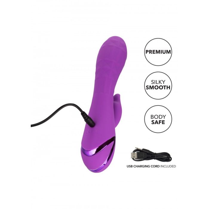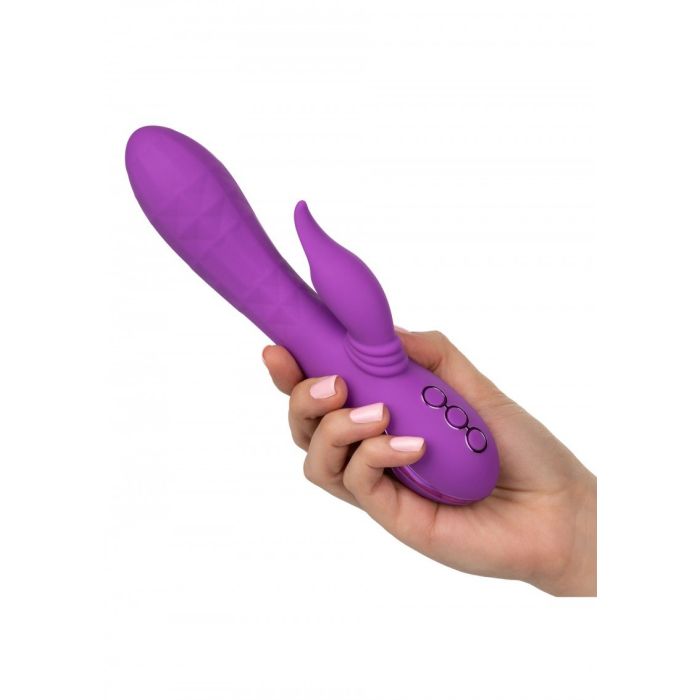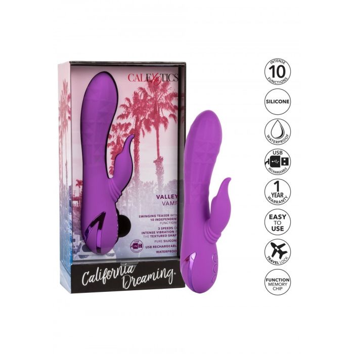 De Rabbit vibrator Valley Vamp is waar veel vrouwen van dromen. Een vibrator die je niet alleen kunt inbrengen voor intense stimulatie van je G-spot, maar die wat extra’s te bieden heeft in de vorm van de krachtige clitoris stimulator. Deze rabbit heeft 10 verschillende trilstanden en je kunt met behulp van de memory chip opslaan welke daarvan jij ook alweer het lekkerst vindt. De vibrator is waterproof en kan dus ook in bad worden gebruikt. De batterijen laad je eenvoudig op met behulp van de meegeleverde usb kabel.