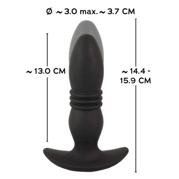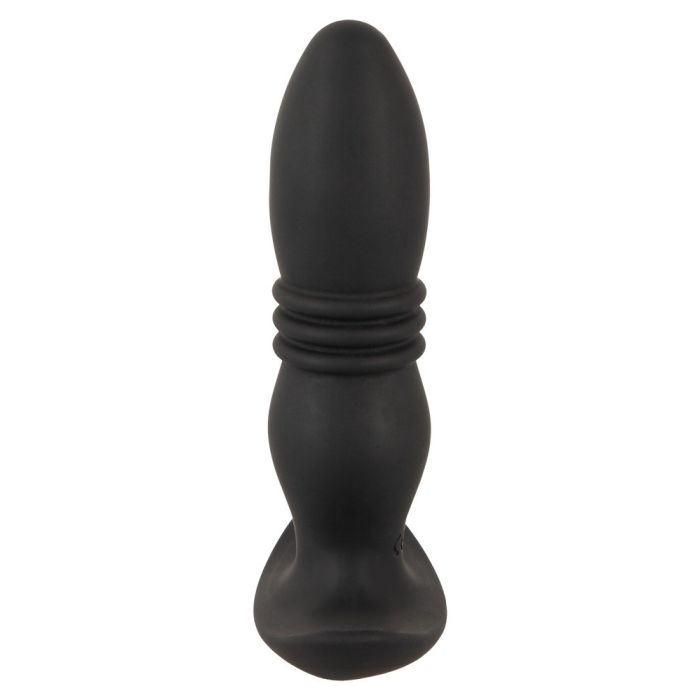 Ontdek stuwend anaal plezier! Deze geweldige anale plug van het merk ANOS beschikt over een krachtige stuwende functie. Ontdek diepe anale stimulatie met een gevoelige afgeronde tip die herhaaldelijk stoot om de prostaat te stimuleren. Daarnaast zijn de trillingen ook sterk voelbaar op het perineum wanneer de plug wordt gedragen. Bedien eenvoudig de 10 vibratiestanden en 6 schokstanden direct op het speeltje of met de meegeleverde afstandsbediening. Dankzij een bereik tot 5 meter kan dit speeltje ook door je lover worden bediend. De plug is overal bedekt met een aangenaam aanvoelende textuur, waardoor je plug bijna vanzelf naar binnen glijdt. De brede basis zorgt voor genoeg veiligheid om onbezorgd te spelen en zorgt ervoor dat je deze plug voor langere periodes kunt dragen zoals tijdens het vrijen bijvoorbeeld. De massager is USB oplaadbaar en er is een magnetische oplaadkabel inbegrepen. Gelieve de batterij voor de afstandsbediening apart te bestellen: 1 x AAA.