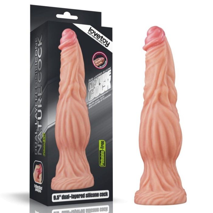 De Realistische dildo Dual-layered van Lovetoy is gemaakt van ultrazachte, dubbellaagse siliconen materiaal. Deze heerlijke dildo heeft een stevige binnenkern en ongelooflijke dikke aderen. Door zijn grote eikel, dikke geaderde schacht en harde binnenkern voelt hij levensecht aan. De dildo heeft een lengte van 24.5 cm en diameter 6.3 cm. Maak de dildo met zijn sterke zuignap vast op een gladde, vlakke ondergrond voor een geile handsfree rit!