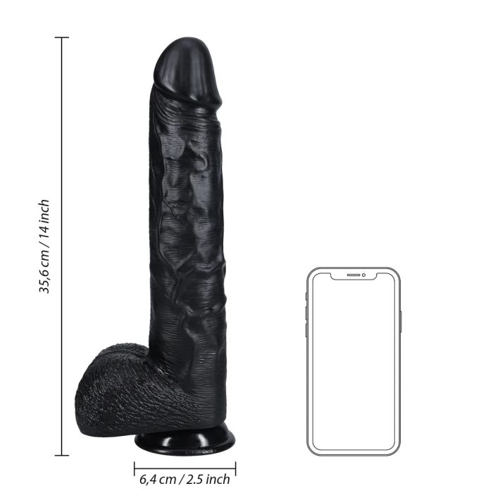 Realistische Dildo Extra Large Recht 35.5 cm - Zwart