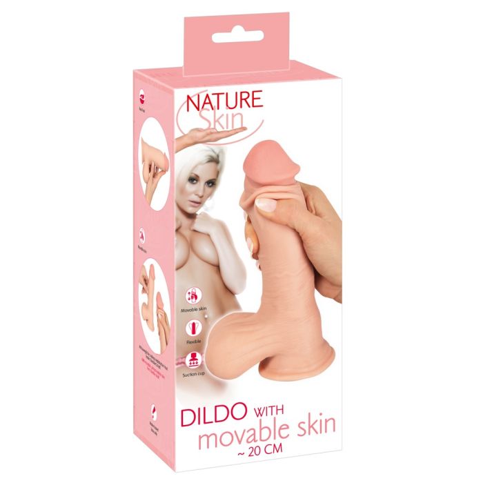 Deze realistische Dildo with moveable Skin van Nature Skin heeft een opwindende stijfheid en hardheid zonder zijn flexibiliteit te verliezen. De dildo is gemaakt van nature skin TPE materiaal. Hij heeft een levensecht uiterlijk met beweegbare aderen en een uitpuilende eikel. De schacht is zacht, flexibel en stuwt opwindend heen en weer tijdens de penetratie. Het Nature Skin materiaal ziet er niet alleen uit als echte huid, het voelt ook net zo zijdezacht aan. Maar de dildo na gebruik schoon met een toycleaner.