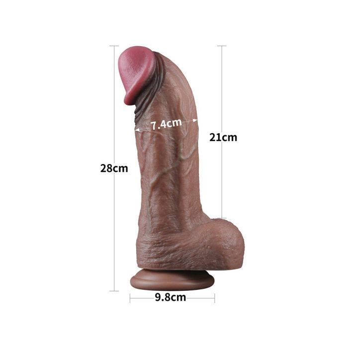 Deze realistische dildo XXL van het merk Lovetoy is flexibel en beweegt mee met de bewegingen van het lichaam voor ultieme bevrediging. De XXL dildo heeft een sterke zuignap zodat hij op elk glad, hard oppervlak bevestigd kan worden voor handsfree gebruik. Door de geaderde schacht, levensechte eikel en ballen is de dildo niet van een echte penis te onderscheiden. De kern van de dildo is gemaakt van stevig platina siliconen, wat zorgt voor een stevige innerlijke kracht die een echte erectie nabootst. De stevigheid wordt aangevuld door de ultrazachte buitenlaag, gemaakt van hetzelfde platina silicone, voor een uitzonderlijk levensechte gevoel tegen de huid. Maak de dildo na gebruik goed schoon met een toycleaner.
