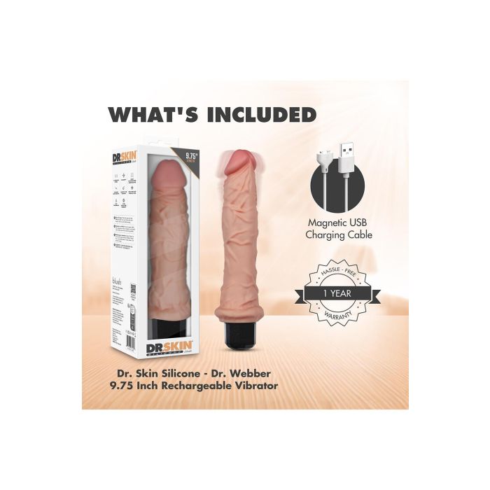 Maak kennis met Dr. Webber, jouw nieuwe beste vriend in de wereld van genot! Deze realistische vibrator van 25 cm is perfect voor zowel solo-avonturen als spannende momenten met je partner. Met maar liefst 10 aanpasbare trillingssnelheden en een flexibele schacht, past Dr. Webber zich moeiteloos aan jouw wensen aan, zodat je altijd de perfecte sensatie kunt ervaren. Gemaakt van Purio®, een premium platina-uitgeharde vloeibare siliconen, voelt deze vibrator zijdezacht aan op je huid dankzij de kenmerkende UltraSilk® afwerking. Of je nu op zoek bent naar een intieme verkenning of een gedeelde ervaring, Dr. Webber is jouw veelzijdige partner die elke aanraking onvergetelijk maakt. Laat je meevoeren in een wereld van diep, bevredigend plezier en ontdek hoe Dr. Webber elk moment van jouw intieme reis kan transformeren in een onvergetelijke ervaring!