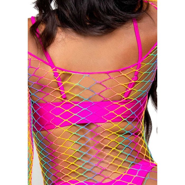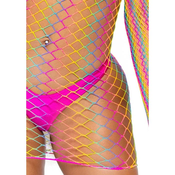 Dit regenboog off shoulder jurkje van Leg Avenue heeft een spannend design. Het jurkje is off shoulder, heeft een kort model en is gemaakt van netstof. Door de felle kleuren is het jurkje een absolute must-have voor de zwoele zomeravonden. Combineer dit jurkje met je favoriete lingerie setje of body en ga een onvergetelijke avond tegemoet. De pasvorm van dit jurkje valt normaal en de maat betreft one-size. Het nylon heeft een hoge rekbaarheid voor een perfect nauwsluitende pasvorm waarin al jouw vrouwelijke vormen goed te zien zijn. Dit strakke en off shoulder jurkje laat je stralen en is perfect voor een avond gevuld met liefde en erotiek.
