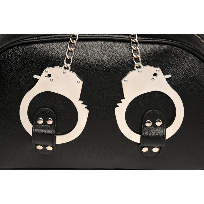 Laat je kinky stijl stralen met onze modieuze bondagetas! Deze tas is niet alleen een eyecatcher, maar ook perfect voor een overnachting. Met een royale afmeting van 33 cm lang, 18,3 cm breed en 18 cm hoog, biedt hij voldoende ruimte voor al je favoriete speeltjes, van vibrators tot kietelaars en zelfs een flogger of paddle. Gemaakt van duurzaam PU-leer, is deze tas veganistisch en bestand tegen een flinke dosis plezier. De tas wordt geleverd met twee sets metalen, nikkelvrije handboeien met snelsluitingen, die je kunt gebruiken als handvat of om je polsen en enkels te binden. En geen zorgen, er zijn maar liefst vier sets sleutels inbegrepen! Mocht er iets op de tas komen, veeg hem dan eenvoudig schoon met een vochtige doek. Of je nu je favoriete lingerie toevoegt of een ballgag voor extra spanning, deze tas laat zien dat je klaar bent voor avontuur. Draag hem aan de kettingen en fantaseer over de opwinding die je te wachten staat!