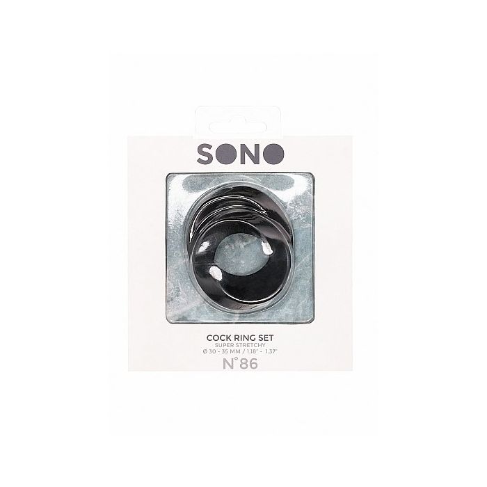Ben jij op zoek naar een cockring voor een hardere erectie of voor een spannend gevoel rond je balzak? Ga dan voor de Rekbare Cockring Set No. 86 - Zwart van SONO. Deze set bestaat uit 2 rekbare cockringen met elk een andere diameter. Je kan de ringen gebruiken om je penis voor een hardere erectie of rond je balzak voor een geil gevoel. Gebruik ze tegelijk voor dubbele sensaties. Geniet solo of samen met je partner van deze heerlijke rekbare cockring set. De cockringen zijn waterproof waardoor jij het ook kan gebruiken voor spannende avontuurtjes in de badkamer.