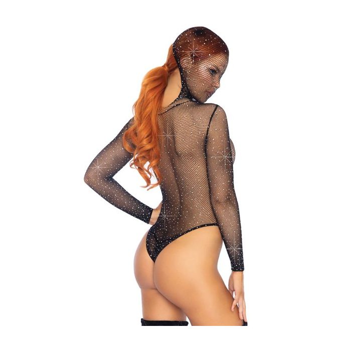 De Rhinestone Net Hooded Body uit de Kink collectie van Leg Avenue is super vrouwelijk, sexy en ondeugend tegelijk. De reversed hoody design van deze body is gezicht bedekkend zorgt ervoor dat deze outfit een kinky twist krijgt. Het netstof materiaal is doorschijnend en laat al je vrouwelijk vormen goed tot hun recht komen. De hoog opgesneden onderkant accentueren je heupen en billen en de sprankelende steentjes waar deze body mee bedekt is zorgen voor de ultieme vrouwelijke touch. Verras je partner in de slaapkamer of draag naar een spannend feestje met mooie lingerie eronder. De Rhinestone Net hooded body is geschikt voor iedereen die open staat voor ondeugende avonturen.