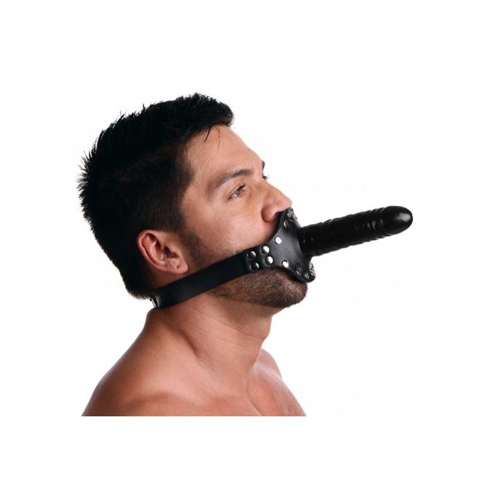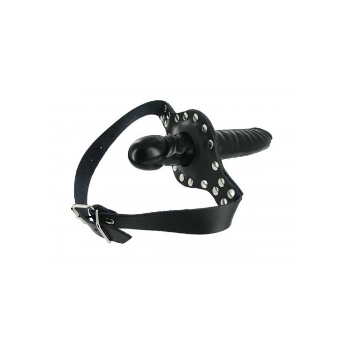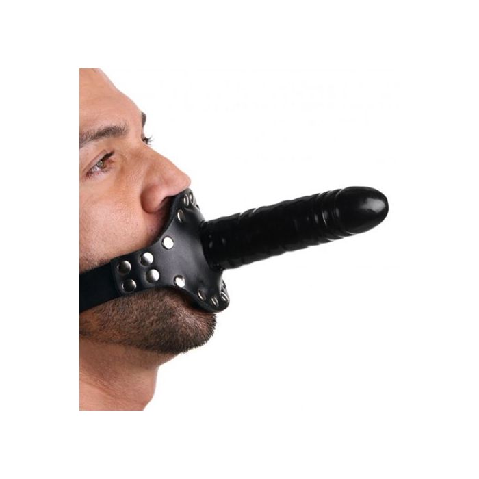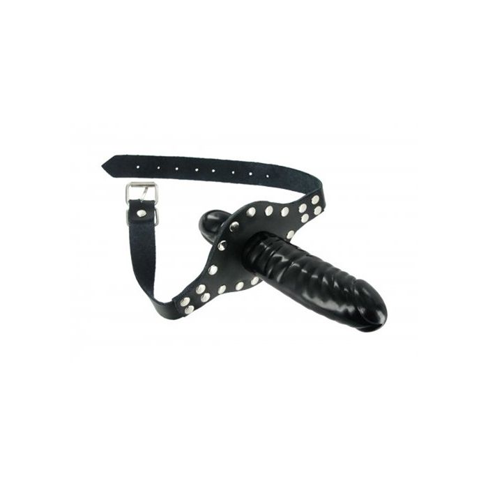 Dit unieke speeltje is ontworpen om je partner zowel te vullen als te verzwijgen, waardoor je samen een onvergetelijke ervaring kunt creëren. Aan de buitenkant vind je een glanzende zwarte dildo die perfect is voor penetratie, terwijl de binnenkant een realistisch, penisvormig mondgag biedt. Deze dubbele dosis genot zorgt ervoor dat je partner zich volledig overgeeft aan het moment, terwijl jij de touwtjes in handen houdt. De stevige, verstelbare leren riem met een gespsluiting achter het hoofd zorgt voor een comfortabele en veilige pasvorm, zodat jullie je volledig kunnen concentreren op de passie.