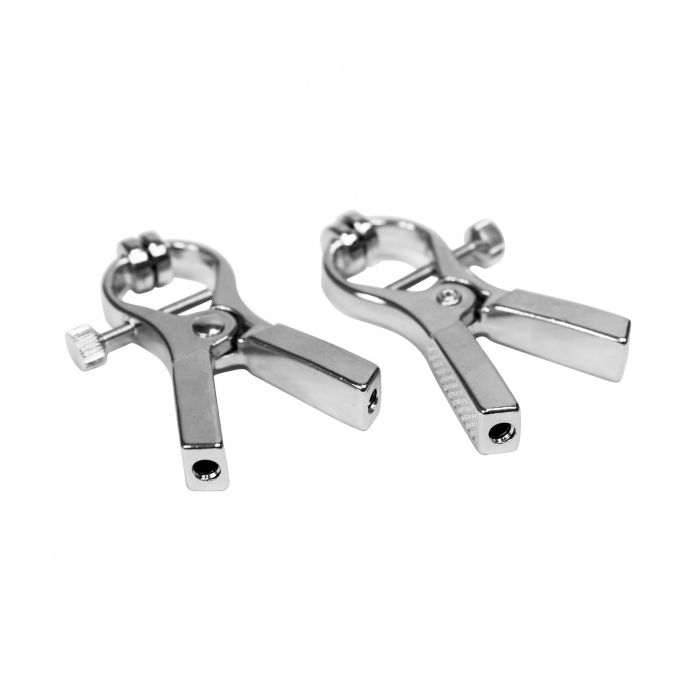 Deze klemmen zijn ontworpen om perfect te passen op alle drie de Rimba powerboxen, waardoor je eindeloos kunt experimenteren met verschillende instellingen en intensiteiten. Met de bijgeleverde kabel met banaanstekkers kun je eenvoudig de klemmen aansluiten en genieten van een unieke ervaring. Wat deze klemmen echt bijzonder maakt, is de bi-polair functie wanneer je beide klemmen tegelijk gebruikt. Dit betekent dat je kunt spelen met verschillende elektrische stromen voor een nog spannender effect.