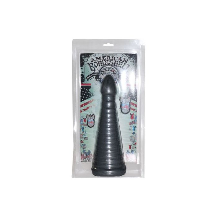Uit de American Bombshell collectie een zeer grote dildo van Rockeye ontwerp. De dildo loopt taps toe, zodat hij gemakkelijk in te brengen is en heeft een geribbelde schacht voor extra genot. Geniet groots van deze opvallende dildo!