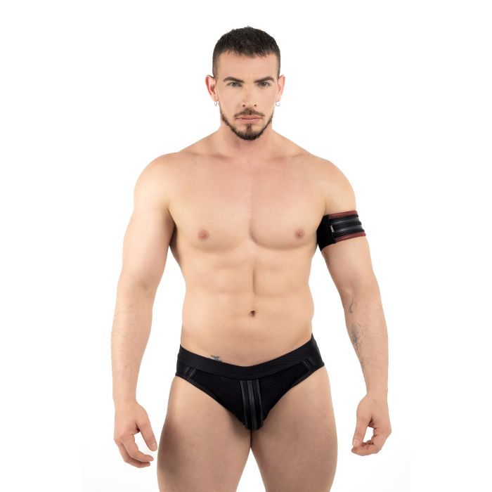 ROK Biker Two Stripes Biceps Band - Zwart/Rood