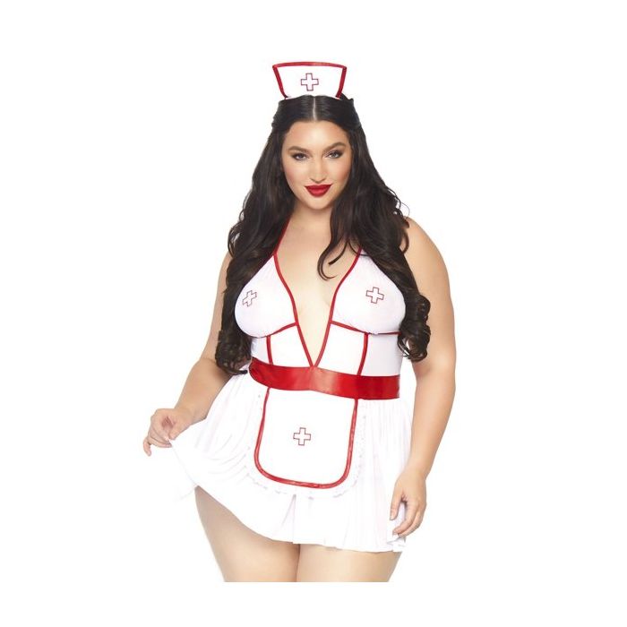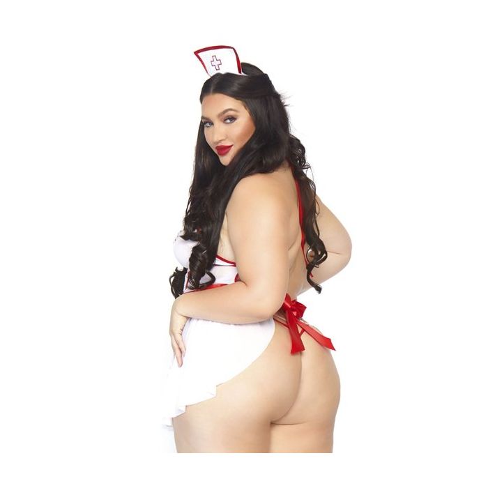De Roleplay Nightshift Nurse Plus Size is een verleidelijke set van het merk Leg Avenue. De set bestaat uit een halter babydoll, string en een haarband. De set is gemaakt van soepel vallende, fijne stof met rode zomen en details.