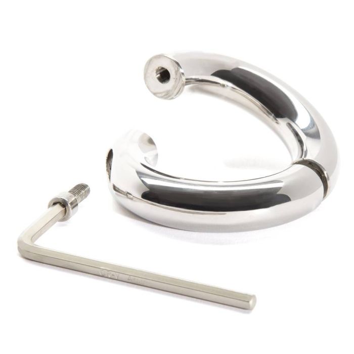 Stalen ballenstretcher bestaande uit twee delen die aan elkaar te schroeven zijn. Het is een mooie massieve ring gemaakt van naadloos roestvrij staal. Wordt vastgezet met behulp van een inbussleutel. Deze topkwaliteit ballstretcher zorgt voor een bijzonder gevoel in de testikels!