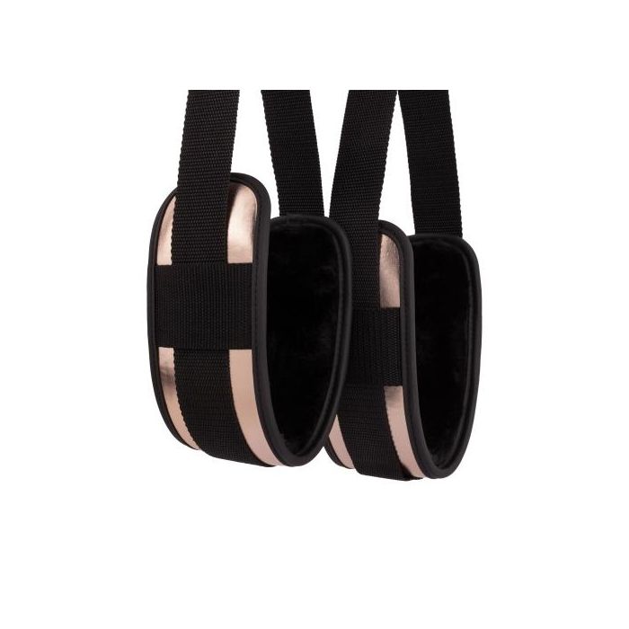 Deze stijlvolle set is ontworpen voor koppels die hun intieme momenten willen verdiepen en nieuwe dynamieken willen verkennen. De sling ondersteunt het lichaam op een natuurlijke manier, waardoor je samen kunt genieten van een mix van ontspanning en spanning. Dankzij de doordachte constructie blijven polsen en enkels stevig op hun plaats, terwijl het ondersteunende nekkussen extra comfort biedt.