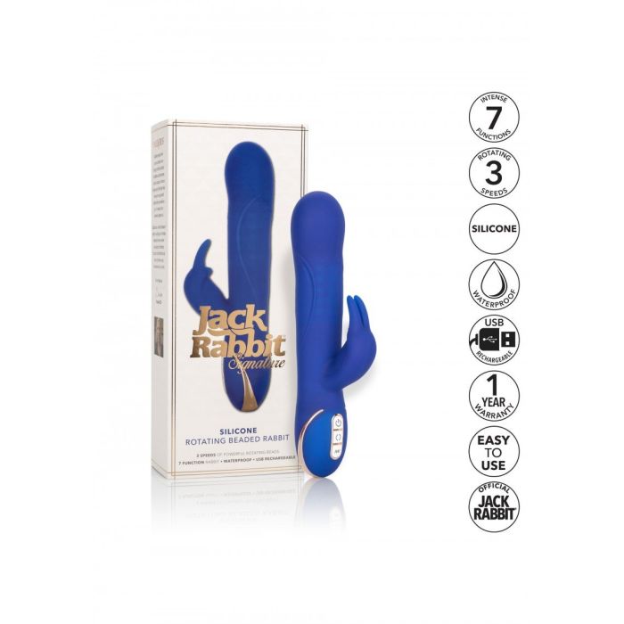 Voor de vrouw die weet wat ze wil. De Roterende Vibrator - Jack Rabbit Paars is een geweldige toy voor elke vrouw die graag wil genieten van een perfect solo avondje. Deze luxe vibrator heeft roterende beads in de bovenkant van zijn schacht zitten. Deze kan jij in 3 snelheden laten bewegen voor een intens gevoel. De tikkende oortjes verwennen tegelijkertijd je clitoris in 7 verschillende standen. Het is mogelijk om de schacht en de clitoris stimulator apart van elkaar te bedienen met het handige push button systeem. Laad de rabbit vibrator op met het meegeleverde usb kabeltje. In 2 uur is de toy volledig opgeladen. Geniet met een volledig opgeladen toy maar liefst 70 tot 80 minuten van intens plezier. De Roterende Vibrator - Jack Rabbit Paars wordt geleverd in een luxe opbergdoos. Berg hem na elk gebruik discreet op in deze mooie doos. Het zachte siliconen materiaal voelt fijn aan op de huid en het ontwerp is afgewerkt met gouden details voor een luxe look. Gebruik de toy ook in de badkamer, hij is namelijk waterproof.