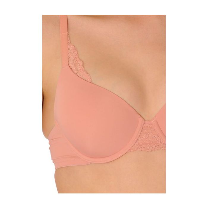 De gladde microvezel cups zijn voorgevormd en voorzien van beugels voor de juiste steun. Tussen de cups is sierlijk kant met geschulpte randjes aangebracht. Het kant komt terug boven de cups. De bh is goed op maat te maken met de verstelbare schouderbandjes en de 3x2 haakse sluiting in de rug.