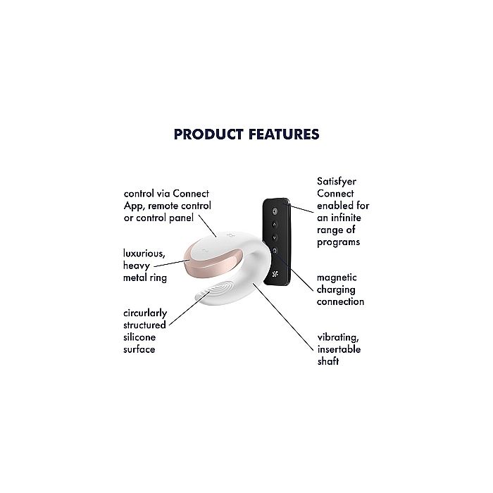 De Satisfyer Double Love is speciaal gemaakt voor partners die het heerlijk vinden om een toy toe te voegen aan hun seksleven en voor partners die een lange afstands relatie hebben. De toy kan namelijk gebruikt worden om samen tussen de lakens te genieten in combinatie met de discrete afstandsbediening. Maar je kunt de toy ook gebruiken in combinatie met de gratis Satisfyer Connect App. Deze is makkelijk te downloaden in de App store of in je Google Play account. Op deze manier is het mogelijk om de toy vanaf elke afstand te bedienen.