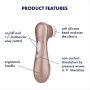 De Satisfyer pro 2 ligt fijn in de hand. Je kunt goed bij de knopjes om hem makkelijk te bedienen. Ik heb de plastic behuizing gekozen. Ik vind het uiterlijk ervan heel mooi, maar qua feeling vind ik siliconen prettiger in de hand.