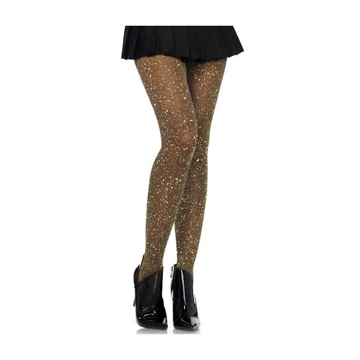 In de prachtige panty van Leg Avenue ben jij met jouw schitterend versierde benen het middelpunt van ieder feestje! De Schitterende Glitter Panty is gemaakt van zacht en soepel nylon waar metallic gouddraad doorheen is geweven voor een fonkelend effect. Het nylon maakt je benen extra mooi en het glitter effect maakt van iedere outfit een feest.