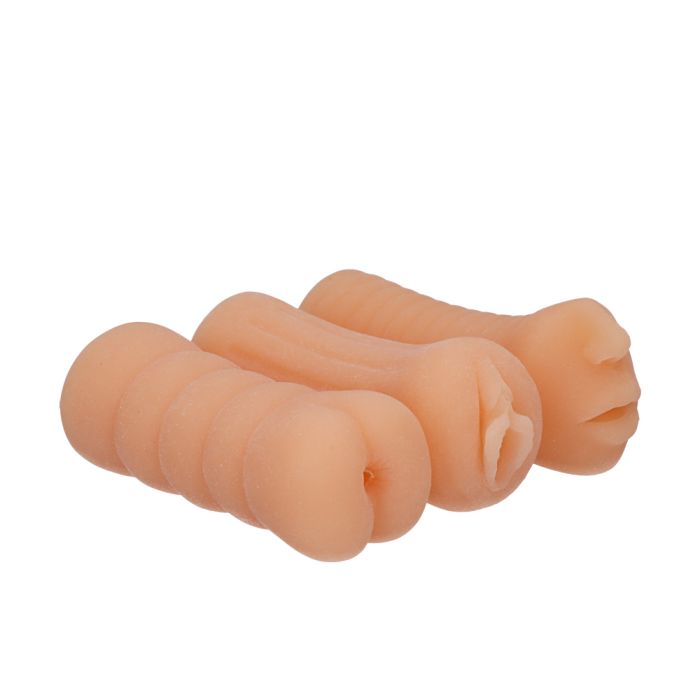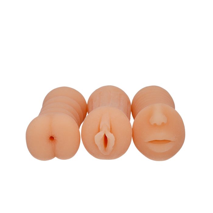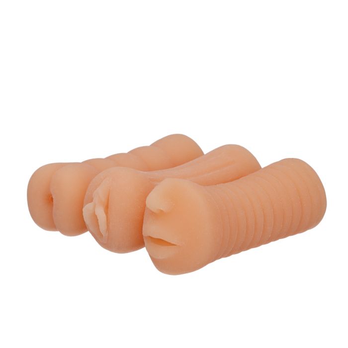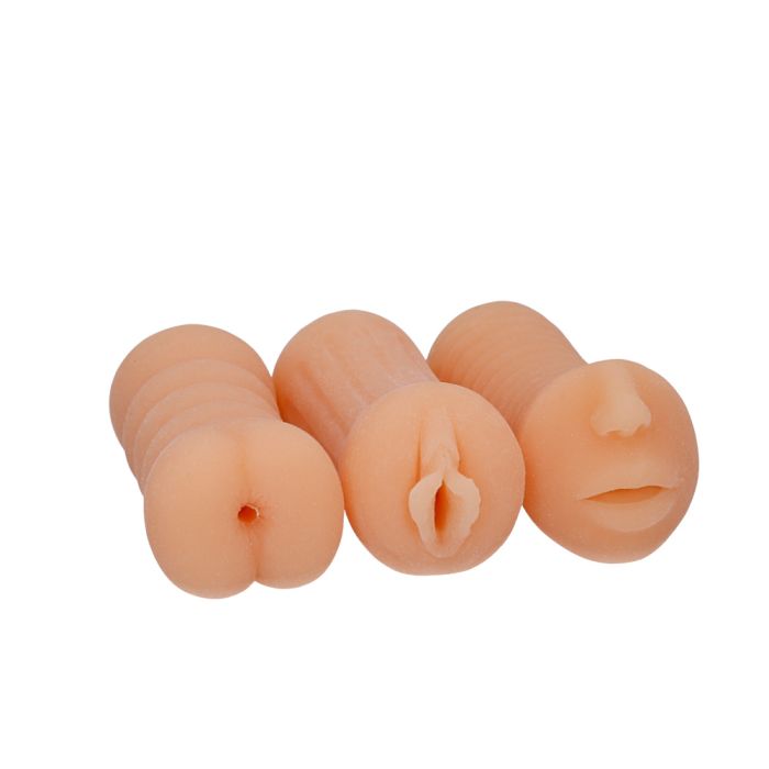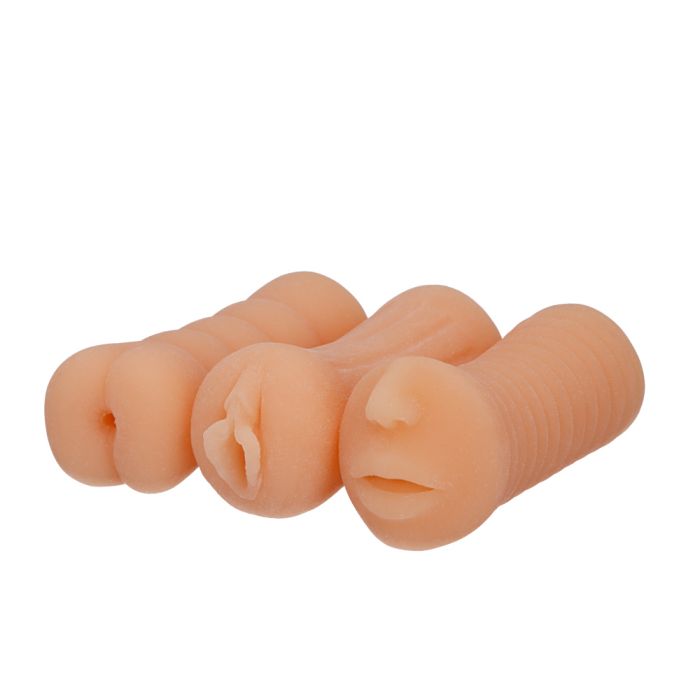 Hou jij wel van wat afwisseling? Bestel dan vandaag nog deze geile masturbators. In deze set zitten drie verschillende compacte mastubators die allemaal een andere opening hebben. Doordat ze zo compact zijn, zijn ze ook handig mee te nemen op reis. De openingen zijn zeer realistisch en hebben een perfect gedetailleerde vorm van mond anus en vagina. Zowel de buiten en de binnenkant zijn geribbeld, dit geeft van binnen een super realistisch gevoel en zorgt er bij de buitenkant voor dat jij een perfecte houvast hebt. Het materiaal is heerlijk zacht en flexibel en zorgt voor een zeer realistische ervaring.
