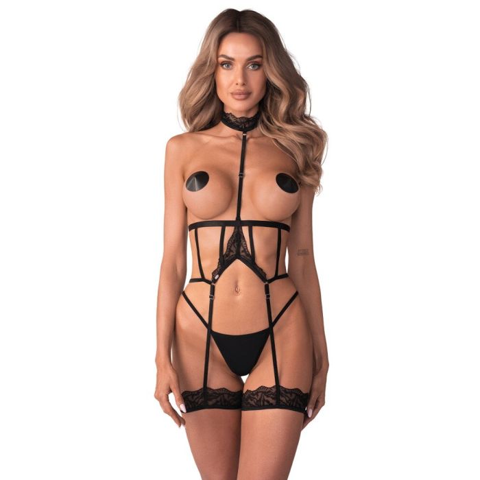 De perfecte mix van verleiding en elegantie met het Sexy Harnas Hersis in zwart van Obsessive. Dit prachtige harnas is vervaardigd uit zachte stretch bandjes die zich moeiteloos om je lichaam vormen, terwijl de delicate kanten details een extra vleugje luxe toevoegen. De opvallende decolleté band met kraag en de stevige jarretelbandjes met kousenband zijn zorgvuldig vastgenaaid aan de extravagante tailleband aan de voorkant, waardoor je een onweerstaanbare uitstraling krijgt. Dankzij de verstelbare haaksluiting aan de achterkant kun je het harnas perfect op maat maken voor een comfortabele en flatterende fit. Draag het harnas solo voor een gedurfde look of combineer het met andere lingerie voor een extra sexy touch. Maak van elke gelegenheid een speciale gelegenheid met dit statement stuk dat je zelfvertrouwen een boost geeft!