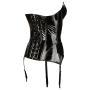 Deze sexy zwarte vinyl corset van het bekende merk Black Level is een échte erotische eyecatcher. Door het speciale ontwerp worden al je vrouwelijke vormen op een spannende manier geaccentueerd, terwijl het corset ondertussen het figuur modelleert. De decoratieve vetersluiting aan de achterkant maakt de spannende look helemaal compleet. Met de haaksluiting aan de voorkant kan de corset snel en eenvoudig worden geopend en gesloten. De 6 jarretelbandjes zijn verstelbaar en afneembaar.